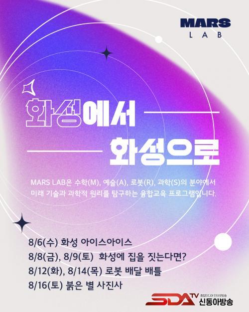 À̹ø ¿©¸§ºÎÅÍ »õ·Ó°Ô ¼±º¸ÀÌ´Â ½Éȱ³À° ¡®MARS LAB¡¯Àº ¼öÇÐ(Math), ¿¹¼ú(Art), ·Îº¿(Robot), °úÇÐ(Science) ºÐ¾ßÀÇ ¿ø¸®¿Í ¹Ì·¡ ±â¼úÀ» ޱ¸ÇÏ´Â À¶ÇÕ ±³À° ÇÁ·Î±×·¥ÀÌ´Ù.
