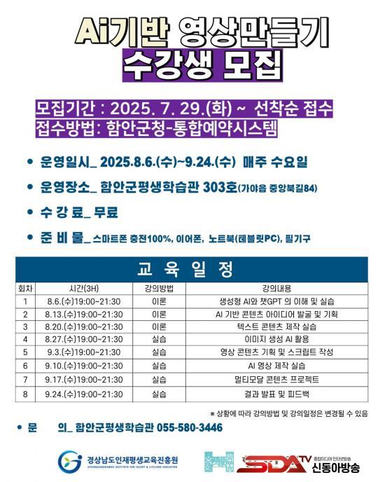 [½Åµ¿¾Æ¹æ¼Û °æ³²ÇÔ¾È=À̽ŵ¿±âÀÚ] ÇԾȱºÀº ÀΰøÁö´É(AI) ±â¼úÀ» Ȱ¿ëÇÑ ¿µ»ó ¸¸µé±â ±³À°°úÁ¤À» ¿À´Â 8¿ù 6ÀϺÎÅÍ ¿î¿µÇÑ´Ù.