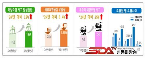 ¿À¿°¿øº°·Î´Â ¾î¼±¿¡¼ ¹ß»ýÇÑ ¿À¿° »ç°í°¡ 7°Ç(38%)À¸·Î °¡Àå ¸¹¾Ò°í, À¯Ãâ·® ±âÁØÀ¸·Î´Â ±âŸ¼±(¸ðÅͺ¸Æ®, ºÎ¼± µî)¿¡¼ ÃÑ 452§¤(34%)°¡ À¯ÃâµÅ °¡Àå ³ôÀº ºñÁßÀ» Â÷ÁöÇß´Ù.