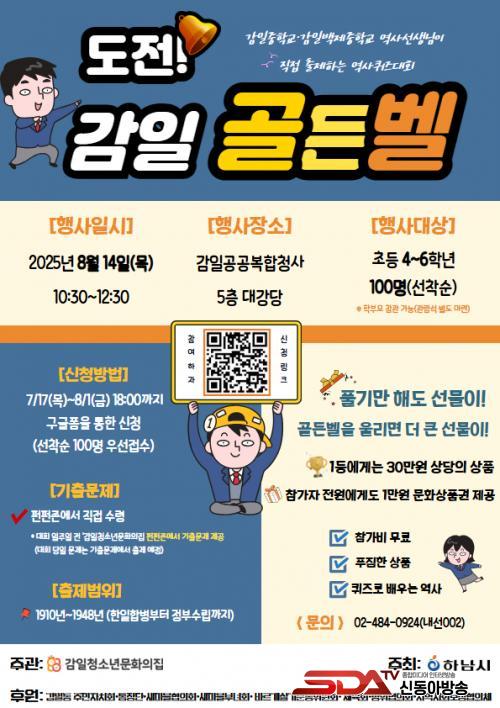 ƯÈ÷, À̹ø ´ëȸ´Â Áö¿ªÀÌ ÇÔ²² ¸¸µå´Â ¿ª»ç±³À° ÇѸ¶´çÀ¸·Î¼ Àǹ̰¡ ¸Å¿ì Å©´Ù. °¨ÀÏÁßÇб³¿Í °¨ÀϹéÁ¦ÁßÇб³ ¿ª»ç ±³»çµéÀÌ ¹®Á¦ ÃâÁ¦¿¡ Âü¿©ÇßÀ¸¸ç, °¨Àϵ¿ ÁÖ¹ÎÀÚġȸ, ÅëÀå´Ü, »õ¸¶À»ÇùÀÇȸ µî °¨Àϵ¿ Á÷´É´Üü 8°÷¿¡¼ ¼ö»ó »óǰÀ» ÈÄ¿øÇÏ¿© Âü°¡ÀÚ Àü¿ø¿¡°Ô´Â ¹®È»óǰ±ÇÀÌ Á¦°øµÇ°í, ÃÖÁ¾ ¿ì½ÂÀÚ µî¿¡°Ô´Â 30¸¸¿ø »ó´çÀÇ Æ¯º° »óǰÀÌ ¼ö¿©µÉ ¿¹Á¤ÀÌ´Ù.