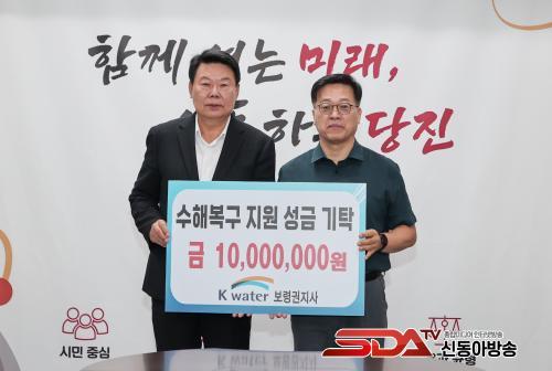 ¹Ú±Ô¿µ Áö»çÀåÀº ¡°k-water´Â ±ú²ýÇÑ ¹°À» °ø±ÞÇÏ´Â °Í»Ó¸¸ ¾Æ´Ï¶ó, Áö¿ª»çȸ¿ÍÀÇ »ó»ýµµ Áß¿äÇÑ Ã¥¹«¶ó°í »ý°¢ÇÑ´Ù¡±¸ç ¡°¼öÇØ·Î ¾î·Á¿òÀ» °Þ°í ÀÖ´Â ´çÁø ½Ã¹Îµé²² Á¶±ÝÀ̳ª¸¶ º¸ÅÆÀÌ µÇ±â¸¦ ¹Ù¶õ´Ù¡±°í ¸»Çß´Ù.