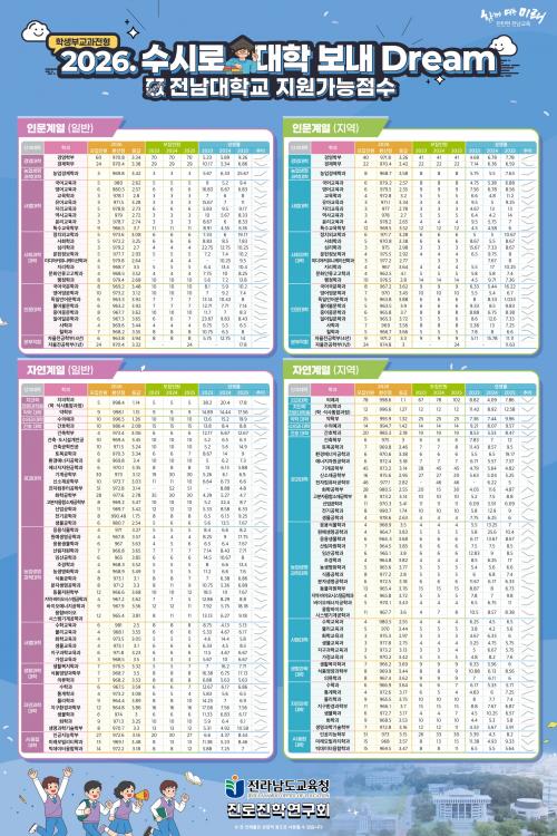 ¡®2026. ´ëÀÔÀÏÁ¤ Á¤¸®ÇØ DREAM¡¯Àº ¿ø¼ Á¢¼ö, ÇÕ°ÝÀÚ ¹ßÇ¥, ´ëÇк° ÀüÇü ÀÏÁ¤ µî ÁÖ¿ä ´ëÀÔ ÀÏÁ¤À» ÇÑ´«¿¡ º¼ ¼ö ÀÖµµ·Ï Á¤¸®ÇÑ °ÍÀ̸ç, ¡®2026Çг⵵ ¼ö½Ã·Î ´ëÇÐ º¸³» DREAM¡¯Àº ¼¿ï ÁÖ¿ä ´ëÇÐ, ÀǾàÇаè¿, Àü³²´ë ±³°úÀüÇüÀÇ ÇÕ°Ý °¡´É µî±Þ ¹× ±³°ú ȯ»ê Á¡¼ö¸¦ ¿¹ÃøÇÑ ÀÚ·áÀÌ´Ù.