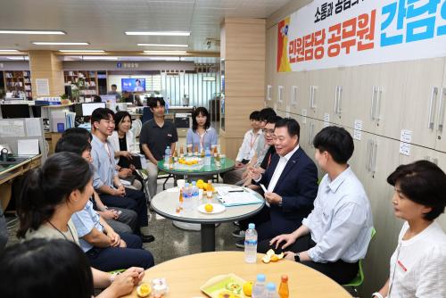 ±è»ê ±º¼ö´Â ¹Î¿ø½ÇÀ» Á÷Á¢ ¹æ¹®ÇÏ¿© ÇàÁ¤ ÃÖÀϼ±¿¡¼ ±Ù¹«ÇÏ´Â ¹Î¿øÃ¢±¸ Á÷¿øµé°ú ÀÏÀÏÀÌ ¾Ç¼öÇÏ¸ç ³ë°í¸¦ °Ý·ÁÇß´Ù.