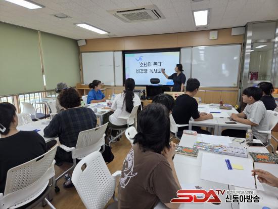 À̹ø µ¶¼Åä·ÐÀº ƯÁ¤ ÀÛǰÀÇ ÁÖÁ¦¿¡ ´ëÇØ °æÀïÇÏ´Â ¹æ½ÄÀÌ ¾Æ´Ñ, Âü¿©ÀÚ ¸ðµÎ°¡ ÀÚÀ¯·Ó°Ô »ý°¢À» ³ª´©°í °ø°¨´ë¸¦ Çü¼ºÇÏ´Â µ¥ ÁÖ·ÂÇß´Ù. ÁÖ¿ä Ȱµ¿À¸·Î´Â Âü°¡ ÇлýÀÌ Á÷Á¢ ¾î¸Ó´Ï²² ¾´ ½Ã¸¦ ³¶µ¶ÇÏ¸ç °¨»óÇÏ´Â ½Ã°£À» °¡Á³À¸¸ç, ´Ù¾çÇÑ Ã¥ ³îÀ̸¦ ÅëÇØ µ¶¼¿¡ ´ëÇÑ Èï¹Ì¸¦ ³ô¿´´Ù. ÀÌ¾î¼ ¡º¼Ò³âÀÌ ¿Â´Ù¡» ÀÛǰ Áß °¡Àå Àλó ±í¾ú´ø Àå¸é¿¡ ´ëÇÑ °¨»óÀ» ¼·Î °øÀ¯ÇÏ¸ç ±íÀÌ ÀÖ´Â ÀÌÇØ¸¦ µµ¸ðÇß´Ù.