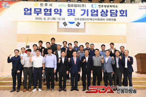 ÁøÁֽô 21ÀÏ »óÆò»ê´Ü Çõ½ÅÁö¿ø¼¾ÅÍ ÄÁº¥¼ÇȦ¿¡¼ ÁøÁÖÁö¿ª ±â¾÷ü¿Í Àª·ÎÆßÇÁÀÇ µ¿¹Ý¼ºÀåÀ» À§ÇÑ ¡®ÁøÁÖ½Ã-Àª·ÎÆßÇÁ(ÁÖ)-ÁøÁÖ»ó°øÈ¸ÀÇ¼Ò 3ÀÚ°£ ¾÷¹«Çù¾à¡¯À» ü°áÇÏ´Â ÇÑÆí Àª·ÎÆßÇÁÀÇ Çù·Â¾÷ü ¹ß±¼À» À§ÇÑ °ü³» Áß¼Ò±â¾÷ »ó´ãȸ¸¦ °³ÃÖÇÏ´Â µî ½ÇÁúÀûÀÎ Çù·Âü°è ±¸Ãà¿¡ ³ª¼¹´Ù.