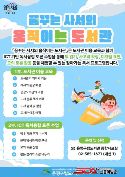 À̹ø ÇÁ·Î±×·¥Àº ¼¿ï½Ã Á¤Ã¥»ç¾÷ÀÎ ¡®Èüµ¶¼¿ï, Ã¥ Àд ÀºÆò¡¯ Ä·ÆäÀÎÀÇ ÀÏȯÀ¸·Î ¸¶·ÃµÆÀ¸¸ç, µµ¼°üÀÌ Á÷Á¢ °ü³» ÃʵîÇб³¿Í Áö¿ª ¾Æµ¿±â°üÀ» ã¾Æ°¡ ÁøÇàÇÏ´Â Âü¿©Çü ¼ö¾÷ÀÌ´Ù. Á¤º¸Åë½Å±â¼ú(ICT)¸¦ Ȱ¿ëÇÑ µ¶¼ À¶ÇÕ Åä·Ð ¼ö¾÷À» Áß½ÉÀ¸·Î ¿î¿µµÇ¸ç ù ¼ö¾÷Àº ¿ì¸®µ¿³×Ű¿ò¼¾ÅÍ ÀºÆò 8È£Á¡¿¡¼ ½ÃÀÛÇÑ´Ù.