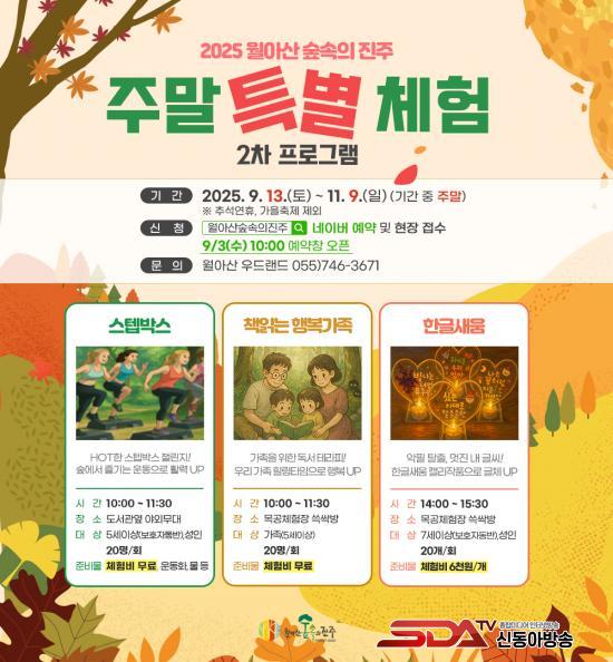 À̹ø ÇÁ·Î±×·¥Àº ÁÖ¸»À» ÀÌ¿ëÇØ ¿Â °¡Á·ÀÌ ÇÔ²² Âü¿©ÇÏ¸é ´õ ÁÁÀº 3°¡Áö ÇÁ·Î±×·¥À¸·Î ±¸¼ºÇß´Ù. ¿À´Â 13ÀϺÎÅÍ 11¿ù 9ÀϱîÁö ¸ÅÁÖ ÁÖ¸»¿¡ ÁøÇàÇϸç, Ãß¼® ¿¬ÈÞ¿Í ¡®¿ù¾Æ»ê ½£¼ÓÀÇ ÁøÁÖ °¡À»ÃàÁ¦ ±â°£¡¯¿¡´Â ¿î¿µÇÏÁö ¾Ê´Â´Ù.