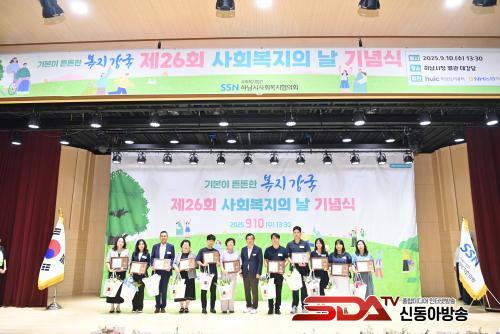 ¡®Á¦26ȸ »çȸº¹ÁöÀÇ ³¯¡¯ ±â³ä »çȸº¹Áö À¯°øÀÚ´Â ¡ãÇϳ²½ÃÀå ǥâ(11¸í) ¡ãÇϳ²½ÃÀÇȸÀÇÀå ǥâ(4¸í) ¡ãÇϳ²½Ã(°©) ±¹È¸ÀÇ¿ø ǥâ(5¸í) ¡ãÇϳ²½Ã(À») ±¹È¸ÀÇ¿ø ǥâ(5¸í) ¡ãÇѱ¹»çȸº¹ÁöÇùÀÇȸÀå ǥâ(1¸í) ¡ã°æ±âµµ»çȸº¹ÁöÇùÀÇȸÀå ǥâ(1¸í) ¡ãÇϳ²½Ã»çȸº¹ÁöÇùÀÇȸÀå ǥâ(1¸í)À¸·Î »çȸº¹Áö ÇöÀå¿¡¼ Çå½ÅÇϸç Áö¿ªº¹Áö ¹ßÀüÀ» À§ÇØ ³ë·ÂÇÑ 28¸íÀÌ ¼ö»óÀÇ ¿µ¿¹¸¦ ¾È¾Ò´Ù.