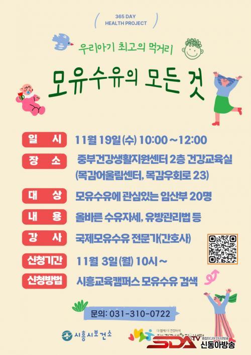 ¡®¸ðÀ¯¼öÀ¯±³½Ç¡¯Àº 11¿ù 19ÀÏ ¿ÀÀü 10½ÃºÎÅÍ 12½Ã±îÁö ÁøÇàµÈ´Ù. ÀÓ»êºÎ¿Í ¿¹ºñºÎ¸ð µî ¸ðÀ¯¼öÀ¯¿¡ °ü½É ÀÖ´Â ´©±¸³ª Âü¿©ÇÒ ¼ö ÀÖ´Ù. Âü°¡ ½ÅûÀº ¿À´Â 11¿ù 3ÀϺÎÅÍ ½ÃÈï±³À°Ä·ÆÛ½º ¡®½ï(SSOC)¡¯ ´©¸®ÁýÀ» ÅëÇØ ¼±Âø¼ø 20¸í±îÁö ÇÒ ¼ö ÀÖ´Ù.