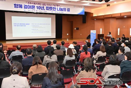 [½Åµ¿¾Æ¹æ¼Û °æ³²ÁøÁÖ=³²±Ã¿µ±â±âÀÚ] ÁøÁֽú¹ÁöÀç´ÜÀº 30ÀÏ ½Ãû 2Ãþ ½Ã¹ÎȦ¿¡¼­ ÁÖ¿ä º¹Áö½Ã¼³ °ü°èÀÚ, ½Ã¹Î, ±âºÎÀÚ µî ¾à 200¿© ¸íÀÌ Âü¼®ÇÑ °¡¿îµ¥¡ºÁøÁֽú¹ÁöÀç´Ü ¼³¸³ 10Áֳ⠱â³ä½Ä¡»À» ¼ºÈ²¸®¿¡ °³ÃÖÇß´Ù°í ¹àÇû´Ù.