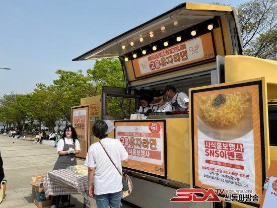 ÃàÁ¦ ÇöÀå¿¡¼´Â ´©±¸³ª ¹«·á·Î À¯ÀÚ¶ó¸éÀ» ¸Àº¼ ¼ö ÀÖ´Â ½Ã½Ä ºÎ½º°¡ ¸¶·ÃµÈ´Ù. À¯ÀÚ¶ó¸éÀº °íÈï»ê À¯ÀÚ¿¢±â½º¸¦ ³ÖÀº ´ß°í±â À°¼ö·Î ¸¸µé¾îÁ®, ù ¼ù°¡¶ôºÎÅÍ »óÅÇÔÀÌ ÀÔ¾ÈÀ» °¨½Î°í ±íÀº ±¹¹° ¸ÀÀÌ À̾îÁø´Ù. À¯ÀÚ Æ¯À¯ÀÇ »ê¶æÇÔ°ú ¶ó¸éÀÇ °¨Ä¥¸ÀÀÌ ¾î¿ì·¯Á®, ±âÁ¸ ¶ó¸é°ú´Â ÀüÇô ´Ù¸¥ ¡®°íÈ︸ÀÇ ÇÑ ±×¸©¡¯À» °æÇèÇÒ ¼ö ÀÖ´Ù. ƯÈ÷ ¿ÃÇØ ÃàÁ¦¿¡¼´Â À¯ÀÚ¸¦ Ȱ¿ëÇÑ À¯ÀÚ±è¹ä°ú ÇÔ²² À¯ÀÚ¶ó¸éÀ» ¼±º¸¿© ¹æ¹®°´µéÀÇ ¿À°¨À» ÇÑÃþ ´õ dz¼ºÇÏ°Ô ÀÚ±ØÇÒ ¿¹Á¤ÀÌ´Ù.