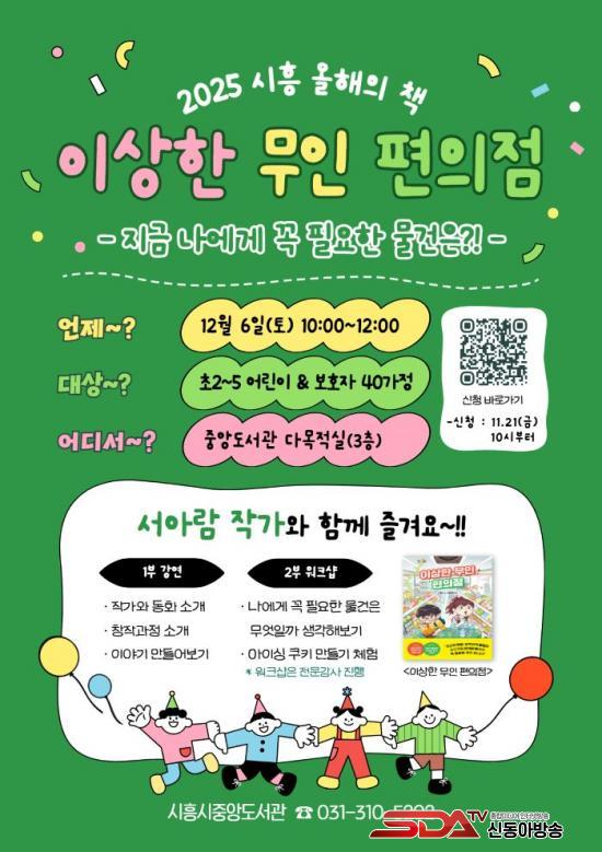 [½Åµ¿¾Æ¹æ¼Û ½ÃÈï½Ã=À̽ŵ¿±âÀÚ] ½ÃÈï½ÃÁß¾Óµµ¼­°üÀº ¡®2025 ½ÃÈï ¿ÃÇØÀÇ Ã¥¡¯ ¾î¸°ÀÌ ºÐ¾ß ¼±Á¤ µµ¼­ÀÎ ¡¸ÀÌ»óÇÑ ¹«ÀÎ ÆíÀÇÁ¡¡¹ÀÇ ¼­¾Æ¶÷ ÀÛ°¡ ÃÊû °­¿¬À» ¿À´Â 12¿ù 6ÀÏ ¿ÀÀü 10½ÃºÎÅÍ Áß¾Óµµ¼­°ü ´Ù¸ñÀû½Ç¿¡¼­ ¿î¿µÇÑ´Ù.