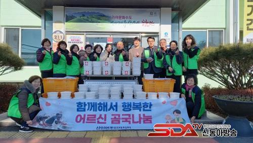 »êÀθé ÁÖ¹ÎÀÚġȸ´Â Æò¼Ò¿¡µµ ²ÙÁØÇÑ ³ª´® Ȱµ¿À¸·Î Áö¿ª ÀÌ¿ôÀ» »ìÇǰí ÀÖÀ¸¸ç, À̹ø¿¡µµ ȸ¿øµéÀÌ Á¤¼º²¯ ²úÀÎ °õ±¹À» Á÷Á¢ ÁغñÇØ Àǹ̸¦ ´õÇß´Ù. ÁغñµÈ °õ±¹Àº µµ¿òÀÌ ÇÊ¿äÇÑ °¡Á¤À» ¹æ¹®ÇØ Àü´ÞÇÏ¸ç ¾ÈºÎ¸¦ »ìÇÇ´Â ½Ã°£µµ ÇÔ²² °¡Á³´Ù.