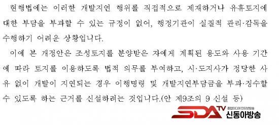 ÀÌ¿¡, Á¤ÀÏ¿µ ÀÇ¿øÀº À̹ø °³Á¤¾È¿¡ ¡ã°æÁ¦ÀÚÀ¯±¸¿ª ³» Á¶¼ºÅäÁö¸¦ ºÐ¾ç¹ÞÀº ÀÚ¿¡°Ô °èȹµÈ ¿ëµµ¿Í Á¤ÇØÁø »ç¿ë ±â°£¿¡ µû¶ó ÅäÁö¸¦ ÀÌ¿ëÇÒ ¹ýÀû Àǹ«¸¦ ¸íÈ®È÷ ºÎ¿©Çϰí, ¡ãÁ¤´çÇÑ »çÀ¯ ¾øÀÌ °³¹ßÀÌ Áö¿¬µÇ°Å³ª À¯ÈÞ »óÅ·Π¹æÄ¡µÉ °æ¿ì ½Ã¡¤µµÁö»ç°¡ ÀÌÇà¸í·ÉÀ» ³»¸° µÚ °³¹ßÁö¿¬ºÎ´ã±ÝÀ» ¿¬ 2ȸ ¹Ýº¹ ºÎ°úÇÒ ¼ö ÀÖµµ·Ï ÇÏ´Â ±Ù°Ü ±ÔÁ¤À» ½Å¼³ÇÏ´Â ³»¿ëÀ» ´ã¾Ò´Ù.
