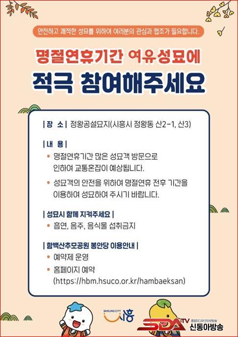 Á¤¿Õ°ø¼³¹¦Áö(Á¤¿Õµ¿ »ê2-1, »ê 3)´Â ½ÃÈï½Ã À¯ÀÏÀÇ °ø¼³¹¦Áö·Î, ¸Å³â ¼³°ú Ãß¼® µî ¸íÀý ´çÀÏ¿¡ ¸Å³â ¸¹Àº ¼º¹¦°´ÀÌ ¹æ¹®Çϰí ÀÖ´Ù. ƯÈ÷ ¿ÃÇØ ¼³ ¸íÀý¿¡´Â ¼º¹¦°´ÀÌ ¿¹³âº¸´Ù ´õ Áõ°¡ÇÒ °ÍÀ¸·Î ¿¹»óµÅ ±³Åë È¥Àâ°ú ÁÖÂ÷ ºÒÆí, ¾ÈÀü»ç°í¸¦ ÃÖ¼ÒÈÇϱâ À§ÇØ ¸íÀý Àü¡¤ÈÄ ºÐ»ê ¹æ¹®¿¡ ´ëÇÑ ½Ã¹ÎµéÀÇ Àû±ØÀûÀÎ ÇùÁ¶°¡ ¿ä±¸µÈ´Ù.