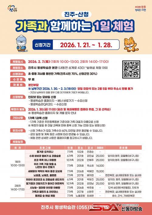 À̹ø üÇè Çà»ç´Â 2¿ù 7ÀÏ ÁøÁֽà Æò»ýÇнÀ°ü º»°ü µî¿¡¼ °³ÃֵǸç, ÃÊ¡¤Áßµî Àڳฦ µ¿¹ÝÇÑ ÁøÁֽùΰú »êû±º¹Î °¡Á·À» ´ë»óÀ¸·Î ÇÑ´Ù. ÇÁ·Î±×·¥Àº ¿ÀÀü°ú ¿ÀÈÄ·Î ³ª´µ¾î ÃÑ 11°³ °ú¸ñ, 81°¡Á· ±Ô¸ð·Î ÁøÇàµÉ ¿¹Á¤ÀÌ´Ù.