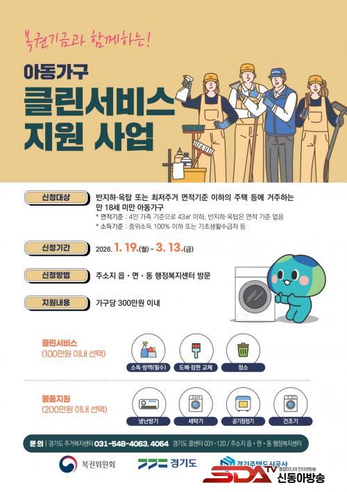 ¾Æµ¿Áְźó°ï°¡±¸ Ŭ¸°¼ºñ½º´Â Àú¼Òµæ ¾Æµ¿°¡±¸ÀÇ ÁÖ°Åȯ°æ°ú À§»ý °³¼±À» À§ÇÑ ¼Òµ¶¡¤¹æ¿ª, µµ¹èÀåÆÇ ±³Ã¼, û¼Ò, ¼ö³³Á¤¸® µî ¡®Å¬¸°¼ºñ½º¡¯¿Í ³Ã³¹æ±â, °ø±âûÁ¤±â, ¼¼Å¹±â, °ÇÁ¶±â µî ¡®¹°Ç°¡¯À» Áö¿øÇÏ´Â »ç¾÷ÀÌ´Ù. ½Ã´Â º» »ç¾÷À» ÅëÇØ ¾Æµ¿ Ä£ÈÀû Áְź¹Áö¸¦ ½ÇÇöÇϰí, ÁÖ°Å Ãë¾à ¾Æµ¿°¡±¸ »îÀÇ Áú Çâ»óÀ» µµ¸ðÇÒ °èȹÀÌ´Ù.