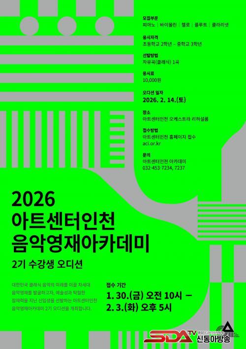 ¾ÆÆ®¼¾ÅÍÀÎõÀº ´ÙÀ½ ´Þ±îÁö À½¾Ç¿µÀç ¾ÆÄ«µ¥¹Ì 2±â Âü°¡ÀÚ¸¦ ¸ðÁýÇÑ´Ù. ½Åû¼ Á¢¼ö´Â 2¿ù 3ÀÏ ¿ÀÈÄ 5½Ã±îÁö´Ù. ºÐ¾ß´Â ÇǾƳë․¹ÙÀ̿ø°․ÿ·Î․ÇÃ·çÆ®․Ŭ¶ó¸®³Ý, ´ë»óÀº ÃʵîÇб³ 2ÇгâºÎÅÍ ÁßÇб³ 3Çгâ±îÁö´Ù.