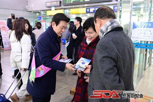 [½Åµ¿¾Æ¹æ¼Û °æ³²ÁøÁÖ=±è¸í¼ö±âÀÚ] ÁøÁֽô 13ÀÏ ¼³ ¸íÀýÀ» ¸Â¾Æ ±Í¼º°´°ú °ü±¤°´¿¡°Ô µû¶æÇÑ È¯¿µ Àλ縦 ÀüÇϰí, º½Ã¶ °ü±¤ ½ÃÁðÀ» ¾ÕµÎ°í ÁøÁÖÀÇ ÁÖ¿ä °ü±¤ ÀÚ¿øÀ» ¾Ë¸®±â À§ÇØ ÁøÁÖ¿ª ÀÏ¿ø¿¡¼ ¡®¼³ ¸íÀý °ü±¤ È«º¸ Ä·ÆäÀΡ¯À» ½Ç½ÃÇß´Ù.