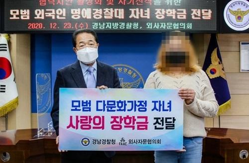 [½Åµ¿¾Æ¹æ¼Û´º½º=±ÇÁöÇý ±âÀÚ] °æ³²°æÂûû°ú ¿Ü»çÀÚ¹®ÇùÀÇȸ´Â ½ÅÁ¾ Äڷγª19·Î ÀÎÇØ ¾î·Á¿òÀ» °Þ°í ÀÖ´Â ¸ð¹ü ¿Ü±¹ÀÎ ¸í¿¹°æÂû´ë ´ë¿ø ÀÚ³àµé¿¡°Ô ÀåÇÐ±Ý Àü´Þ Çà»ç¸¦ °³ÃÖÇß½À´Ï´Ù. À̹ø Çà»ç´Â Äڷγª19·Î ÀÎÇØ ¾î·Á¿î »çȸ ¿©°Ç¿¡µµ ºÒ±¸ÇÏ°í ¿¬¸»À» ¸Â¾Æ ²à²àÇÏ¡¦