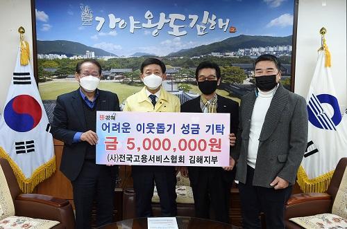 [½Åµ¿¾Æ¹æ¼Û´º½º=ÀÌÇýºó ±âÀÚ] Àü±¹°í¿ë¼­ºñ½ºÇùȸ ±èÇØ ÁöºÎ´Â 20ÀÏ ±èÇØ½ÃûÀ» ¹æ¹®ÇØ ¾î·Á¿î ÀÌ¿ôÀ» À§ÇØ ½á ´Þ¶ó¸ç ¼º±Ý 500¸¸¿øÀ» ±âŹÇß½À´Ï´Ù. ½Ã´Â À̹ø ¼º±ÝÀ» °æ³²»çȸº¹Áö°øµ¿¸ð±Ýȸ¸¦ ÅëÇØ ¾î·Á¿î ÀÌ¿ôµé¿¡°Ô Àü´ÞÇÕ´Ï´Ù. Àü±¹°í¿ë¼­ºñ½ºÇùȸ ±èÇØ ¡¦