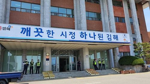 Àü±¹°Ç¼³±â°è °æ³²±èÇØÇùÀÇȸ, ±èÇØ½Ãû ¾Õ Æ÷Å©·¹ÀÎ µ¿¿øÇÑ ½ÃÀ§ ¹ú¿©