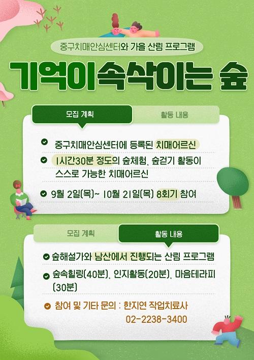 [½Åµ¿¾Æ¹æ¼Û´º½º=Â÷¼­À± ±âÀÚ] ¼­¿ï½Ã Áߺΰø¿ø³ìÁö»ç¾÷¼Ò´Â Áß±¸Ä¡¸Å¾È½É¼¾ÅÍ¿Í ÇÔ²² ÀϹݡ¤°æµµÀÎÁöÀå¾Ö ³ëÀÎ, Ä¡¸Å ³ëÀÎÀ» µ¹º¸´Â °¡Á·À» ´ë»óÀ¸·Î °¡À»Ã¶ ³²»êµÑ·¹±æ »ê¸² Ä¡À¯ ÇÁ·Î±×·¥À» ³»ÀϺÎÅÍ 10¿ù ÇÑ ´Þ°£ ¿î¿µÇÕ´Ï´Ù. À̹ø Çà»ç´Â Äڷγª19 Àå±âÈ­·Î ¹ß¡¦