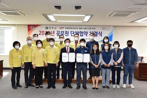 [½Åµ¿¾Æ¹æ¼Û´º½º=¼­È¿°æ ±âÀÚ] ÁøÁÖ½Ã¿Í Àü±¹°ø¹«¿ø³ëµ¿Á¶ÇÕ ÁøÁÖ½ÃÁöºÎ´Â ÁøÁÖ½Ãû »óȲ½Ç¿¡¼­ Á¶±ÔÀÏ ½ÃÀå°ú ±è¿µÅ ÁöºÎÀåÀ» ºñ·ÔÇÑ ³ë»ç ¾çÃø ±³¼·À§¿øÀÌ Âü¼®ÇÑ °¡¿îµ¥ 2021³â ´ÜüÇù¾à ü°á½ÄÀ» °¡Á³½À´Ï´Ù. À̹ø ´ÜüÇù¾à ü°áÀº 2018³â °ø¹«¿ø³ëÁ¶°¡ ÇÕ¹ý³ë¡¦