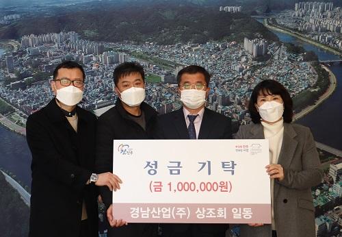 [½Åµ¿¾Æ¹æ¼Û´º½º=Á¤ÁöÀ± ±âÀÚ] °æ³²»ê¾÷(ÁÖ)(´ëÇ¥ Á¶Çö¼Û) ¹× Á÷¿ø »óÁ¶È¸(ȸÀå ÃÖÁ¤³²)´Â Áö³­ 8ÀÏ ¼º±Ý 100¸¸¿øÀ» ÁøÁֽú¹ÁöÀç´Ü(ÀÌ»çÀå À̼º°©)¿¡ Àü´ÞÇß½À´Ï´Ù. À̳¯ ¿­¸° ±âŹ½Ä¿¡¼­ ÃÖÁ¤³² »óÁ¶È¸ÀåÀº ¡°È¸¿øµéÀÇ ÀÛÀº ³ª´® ½ÇõÀÌ ´õºÒ¾î ÇÔ²² »ç´Â »çȸ¸¦ ¡¦