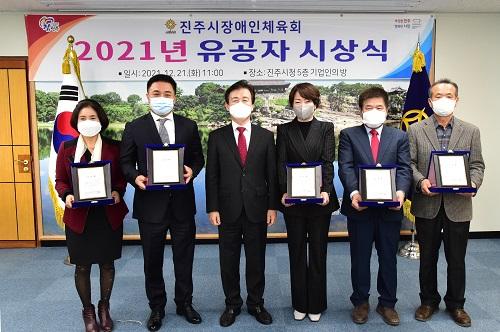 [½Åµ¿¾Æ¹æ¼Û´º½º=Á¤ÁöÀ± ±âÀÚ] ÁøÁÖ½ÃÀå¾ÖÀÎüÀ°È¸(ȸÀå Á¶±ÔÀÏ ÁøÁÖ½ÃÀå)´Â Áö³­ 21ÀÏ 2021³â ÁøÁÖ½ÃÀå¾ÖÀÎüÀ°È¸ À¯°øÀÚ ½Ã»ó½ÄÀ» ºÐ»ê °³ÃÖÇß½À´Ï´Ù. Àå¾ÖÀÎüÀ°È¸´Â ´çÃÊ 350¿© ¸íÀÇ Àå¾ÖÀΠüÀ°ÀÎÀ» ´ë»óÀ¸·Î ½Ã»ó½Ä°ú ÀÚ¿øºÀ»çÀÚ È­ÇÕ Çà»ç¸¦ ÁغñÇÏ¿´À¸³ª, ÄÚ¡¦