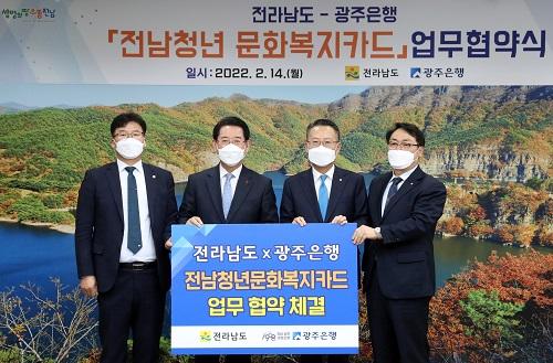 [½Åµ¿¾Æ¹æ¼Û´º½º=Á¤ÁöÀ± ±âÀÚ] Àü¶ó³²µµ´Â û³â¿¡°Ô ±³Å빮ȭºñ¸¦ Áö¿øÇÏ´Â ¡®Ã»³â ¹®È­º¹ÁöÄ«µå¡¯ Áö¿ø»ç¾÷ÀÇ È¿À²Àû ÃßÁøÀ» À§ÇØ 14ÀÏ µµÃ» VIP½Ç¿¡¼­ ±¤ÁÖÀºÇà°ú ¾÷¹«Çù¾àÀ» Çß´Ù°í ¹àÇû½À´Ï´Ù. Çù¾à¿¡ µû¶ó ±¤ÁÖÀºÇàÀº û³â ¹®È­º¹ÁöÄ«µå »ç¾÷ÀÇ ¿Â¶óÀÎ ½ÅûÀÌ ¡¦