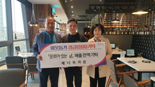 [½Åµ¿¾Æ¹æ¼Û´º½º=½Åµ¿È£±âÀÚ] Áö³­ ´Þ, 29ÀÏ ºÎ¿øµ¿ ¾ÆÀ̽ºÄù¾î ¼ÒÀç Ç»Àü ÀÌÅ»¸®¾È ´ÙÀÌ´× Á¦ÀÌÄî°¡µçÀº ºÎ¿øµ¿ÇàÁ¤º¹Áö¼¾ÅÍ¿¡ ¼º±Ý 72¸¸¿øÀ» ±âŹÇß½À´Ï´Ù. Á¦ÀÌÄî°¡µçÀº ¿ÃÇØ 1¿ùºÎÅÍ ¸Å¿ù ¸¶Áö¸· ÁÖ ¼ö¿äÀÏ ¸ðµç ¸Þ´º¸¦ ¹Ý°ªÀ¸·Î ÆÇ¸ÅÇϸç, ÀÌ¡¦