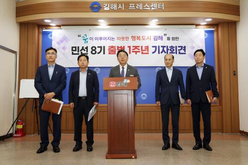 [½Åµ¿¾Æ¹æ¼Û´º½º=ÃÖ¼ÛÈ­±âÀÚ] ¹Î¼±8±â È«ÅÂ¿ë ±èÇØ½ÃÁ¤ÀÌ 1ÁÖ³âÀ» ¸Â¾Æ 28ÀÏ ¿ÀÀü 11½Ã ½Ãû ÇÁ·¹½º¼¾ÅÍ¿¡¼­ ±âÀÚȸ°ßÀ» ¿­¾ú½À´Ï´Ù. È«ÅÂ¿ë ½ÃÀåÀº ¹Î¼±8±â Ãâ¹ü 1ÁÖ³âÀ» ¸Â´Â ¼Òȸ¿Í Áö³­ 1³âÀÇ ¼º°ú¸¦ ¼³¸íÇÏ°í ±èÇØ½ÃÁ¤ÀÇ ºñÀüÀ» Á¦½ÃÇß½À´Ï´Ù. È« ½ÃÀåÀº ¡°¡¦