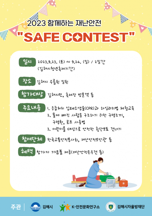 [½Åµ¿¾Æ¹æ¼Û´º½º=ÀÌÁ¶Àº±âÀÚ] ±èÇØ½Ã¿Í ±èÇØ½ÃÀÚÀ²¹æÀç´ÜÀÌ ÁÖÃÖÇÏ´Â 2023 ÇÔ²²ÇÏ´Â Àç³­¾ÈÀü ¡®Safe Contest'rk 9¿ù 23ÀϺÎÅÍ 24ÀϱîÁö ÀÌÆ²°£ ±èÇØ½Ã ¼ö¸ª¿ø ÀÏ¿ø¿¡¼­ °³Ãֵ˴ϴÙ. ±èÇØ½Ãû³âÃàÁ¦±â°£µ¿¾È ±èÇØ½Ã¹Î, ÃàÁ¦Àå ¹æ¹®°´À» ´ë»óÀ¸·Î ÇÏ´Â ÀÌ ÄÜÅ×½ºÆ®´Â¡¦