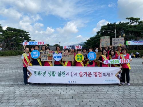 [½Åµ¿¾Æ¹æ¼Û´º½º=ÃÖ¼ÛÈ­±âÀÚ] ±èÇØ½Ã´Â 27ÀÏ ¼ö·Î¿Õ¸ª ¾Õ ±èÇØ5ÀÏÀå ÀÏ¿ø¿¡¼­ ±èÇØ½Ã ±âÈÄ¡¤È¯°æ³×Æ®¿öÅ© ȸ¿ø 20¿©¸í°ú ÇÔ²² ģȯ°æ Ãß¼®¸íÀý º¸³»±â Ä·ÆäÀÎÀ» °³ÃÖÇß½À´Ï´Ù. À̹ø Ä·ÆäÀÎÀº ¹ÎÁ· ´ë¸íÀýÀÎ Ãß¼®À» ¸Â¾Æ ½Ã¹ÎµéÀÌ ¸íÀý¿¡µµ ź¼ÒÁ߸³ »ýȰÀ» ½ÇõÇϵµ¡¦
