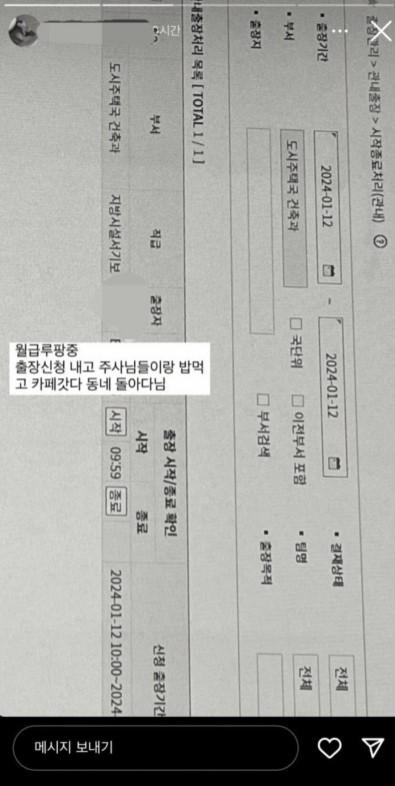 "¿ù±Þ ·çÆÎ Áß" SNS¿¡ ´ç´çÈ÷ ÇãÀ§ ÃâÀå »ç½Ç °Ô½ÃÇÑ °ø¹«¿ø ³í¶õ