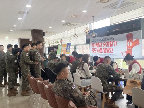 [½Åµ¿¾Æ¹æ¼Û °æ³²ÇÔ¾È=À̽ŵ¿±âÀÚ]ÇԾȱºº¸°Ç¼Ò´Â À°±º Á¦6128ºÎ´ë¿¡¼­ ±º °£ºÎ¿Í ±º¹«¿ø, À庴°ú ÇÔ²²ÇÏ´Â ÀÚ±âÇ÷°ü ¼ýÀھ˱â, ·¹µå¼­Å¬ Ä·ÆäÀÎÀ» ½Ç½ÃÇß´Ù°í 4ÀÏ ¹àÇû´Ù. À̹ø Ä·ÆäÀÎÀº °Ç°­°ü¸®¿¡ ¼ÒȦÇϱ⠽¬¿î 2040¼¼´ëÀÇ ±º °£ºÎ¿Í ±º¹«¿ø, ±º À庴µé¿¡°Ô ½É³ú¡¦
