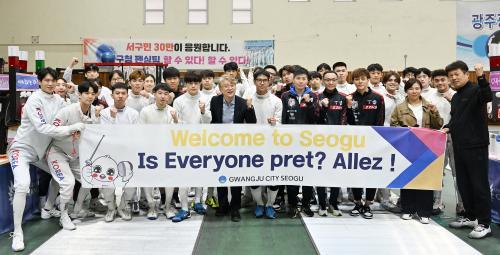 <@1> [½Åµ¿¾Æ¹æ¼Û=ÀÌÁöÇö±âÀÚ] ±èÀ̰­ ±¤ÁÖ ¼­±¸Ã»ÀåÀº 4ÀÏ ¿ÀÈÄ ¿°ÁÖüÀ°°ü Ææ½ÌÈÆ·ÃÀå¿¡¼­ ÀüÁöÈÆ·ÃÀ» À§ÇØ ¹æÇÑÇÑ ´ë¸¸°ú ½Ì°¡Æ÷¸£ ÄÚÄ¡¿Í Çлý 20¿©¸í¿¡°Ô ȯ¿µÀÇ ¸Þ½ÃÁö¸¦ ÀüÇϰí ÀÀ¿øÇß´Ù.
