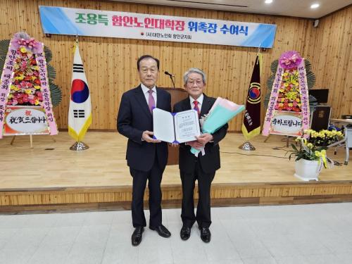 [½Åµ¿¾Æ¹æ¼Û ÇÔ¾È=À̽ŵ¿±âÀÚ](»ç)´ëÇѳëÀÎȸ ÇԾȱºÁöȸ(ÁöȸÀå ÀÌÇе¿)´Â ºÎ¼³ ÇԾȳëÀδëÇÐÀå ¿¡ Á¶¿ëµæ ³ëÀÎȸ ±ºÁöȸ Àü °¨»ç¸¦ Áö³­ ÀÌ´Þ 1ÀÏÀÚ·Î À§ÃËÇß´Ù. ÀÌ»çȸÀÇ ÃÖÁ¾ ½ÂÀÎÀ» ¹Þ¾Æ À§ÃËÀåÀ» ¹ÞÀº Á¶¿ëµæ ½ÅÀÓ ÇÐÀåÀº »êÀθéÀå, ¹ý¼ö¸éÀå, ÇԾȱº ³ó¾÷¡¦