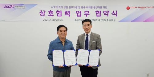 [½Åµ¿¾Æ¹æ¼Û´º½º=ÃÖ¼ÛÈ­±âÀÚ] (Àç)±èÇØ¹®È­Àç´Ü(´ëÇ¥ÀÌ»ç ÃÖ¼®Ã¶)ÀÌ ·Ôµ¥ÇÁ¸®¹Ì¾ö¾Æ¿ï·¿±èÇØÁ¡(Á¡Àå ±èº´ÀÏ)°ú 5ÀÏ(±Ý) ¾÷¹«Çù¾à½ÄÀ» ü°áÇß´Ù. À̹ø Çù¾àÀº ±èÇØÁö¿ª ¿¹¼ú°¡ ¹× âÀÛÀÚÀÇ »óǰ ÆÇ·ÎÁö¿ø°ú °øµ¿¸¶ÄÉÆÃ È°¼ºÈ­ µî ´Ù°¢ÀûÀÎ ±³·ù¿Í Çù·Â »ç¾÷À» ÃßÁøÇØ ¡¦