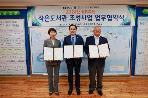 [½Åµ¿¾Æ¹æ¼Û=¿Ïµµ À̼±Á¾ ±âÀÚ] ¿Ïµµ±ºÀº Áö³­ 9ÀÏ KB±¹¹ÎÀºÇà, (»ç)ÀÛÀºµµ¼­°ü¸¸µå´Â»ç¶÷µé°ú ¡®KB ÈÄ¿ø ÀÛÀº µµ¼­°ü Á¶¼º »ç¾÷¡¯¿¡ µû¸¥ ¾÷¹« Çù¾àÀ» ü°áÇß´Ù. ¾÷¹« Çù¾à¿¡´Â ½Å¿ìö ¿Ïµµ±º¼ö¿Í KB±¹¹ÎÀºÇà È£³²Áö¿ª±×·ì ³ëÇöÁÖ ´ëÇ¥, (»ç)ÀÛÀºµµ¼­°ü¸¸µå´Â¡¦