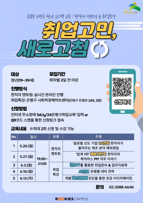 [½Åµ¿¾Æ¹æ¼Û ÀºÆò±¸=À̽ŵ¿±âÀÚ]ÀºÆò±¸´Â û³âµéÀÇ ¼º°øÀûÀÎ Ãë¾÷À» Áö¿øÇϱâ À§ÇÑ ¡®2024. û³â ¿Â½ºÆå ±³À°¡¯ Âü¿©ÀÚ¸¦ ¸ðÁýÇÑ´Ù°í ¹àÇû´Ù. À̹ø ±³À°Àº ¼ö¿äÁ¶»ç¸¦ ¹ÙÅÁÀ¸·Î Ãë¾÷¿¡ ´ëÇÑ Ã»³âµéÀÇ ¼±È£°¡ ³ôÀº °ú¸ñÀ¸·Î ±¸¼ºÇϰí, ½Ç½À À§ÁÖÀÇ °³Àκ° ¸ÂÃã ¼Ò±Ô¸ð¡¦