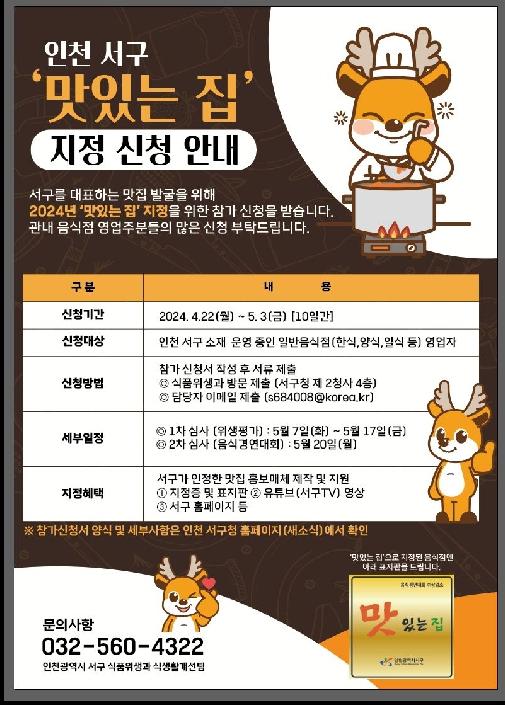 [½Åµ¿¾Æ¹æ¼Û ÀÎõ= À±¹Î½Ä±âÀÚ]ÀÎõ ¼­±¸´Â Áö¿ª »ó±Ç Ȱ¼ºÈ­¿Í ¿Ü½Ä ¾÷¼Ò °æÀï·Â °­È­¸¦ À§ÇØ ¡®¸ÀÀÖ´Â Áý¡¯ ÁöÁ¤À» À§ÇÑ À½½Ä °æ¿¬´ëȸ Âü°¡¾÷¼Ò¸¦ ¸ðÁýÇÑ´Ù°í ¹àÇû´Ù. ¼­±¸¿¡¼­ À½½ÄÁ¡À» ¿î¿µ ÁßÀÎ ¿µ¾÷ÀÚ¸¦ ´ë»óÀ¸·Î Áö¿ªÀ» ´ëÇ¥ÇÒ ¼ö ÀÖ´Â ¿ì¼ö À½½ÄÁ¡À» ¹ß±¼ÇÏ¡¦