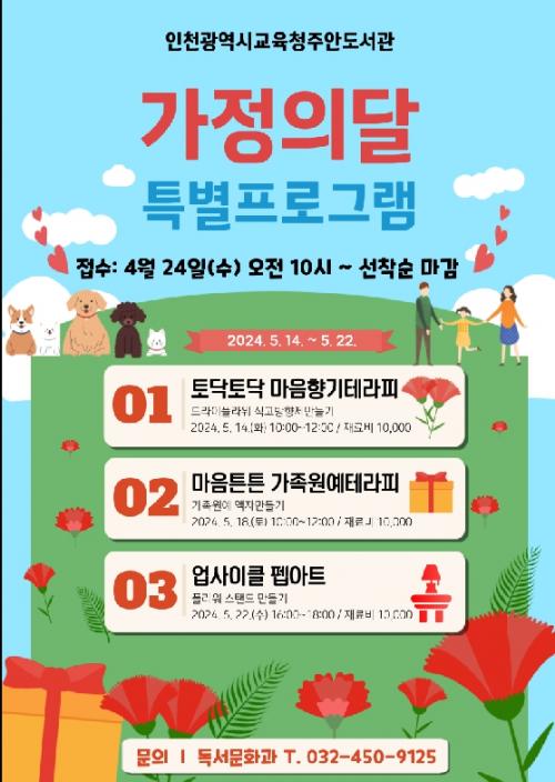 [½Åµ¿¾Æ¹æ¼Û ÀÎõ= À±¹Î½Ä±âÀÚ]ÀÎõ±¤¿ª½Ã±³À°Ã»Á־ȵµ¼­°üÀº 5¿ù 14ÀÏ(È­)ºÎÅÍ 22ÀÏ(¼ö)±îÁö 5¿ù °¡Á¤ÀÇ ´ÞÀ» ¸ÂÀÌ ´Ù¾çÇÑ Æ¯º°ÇÁ·Î±×·¥À» ÁøÇàÇÑ´Ù. °¡Á¤ÀÇ ´Þ Ưº°ÇÁ·Î±×·¥Àº 5¿ù 14ÀÏ(È­)ºÎÅÍ 5¿ù 22ÀÏ(¼ö)±îÁö Á־ȵµ¼­°ü Æò»ýÇнÀ1½Ç ¹× âÀÛ°ø°£ ²Þµð¹Ìµð¿¡¼­¡¦