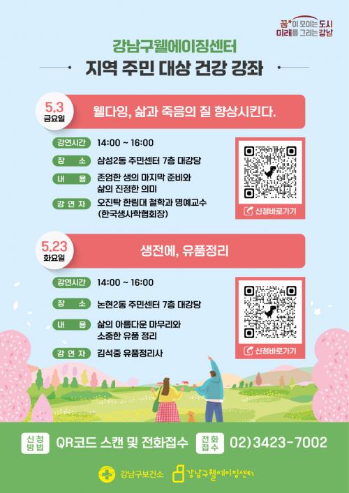 [½Åµ¿¾Æ¹æ¼Û °­³²±¸=À̽ŵ¿±âÀÚ]°­³²±¸°¡ 5¿ù °¡Á¤ÀÇ ´ÞÀ» ¸Â¾Æ 60¼¼ ÀÌ»ó ±¸¹ÎÀ» ´ë»óÀ¸·Î 5¿ù 3Àϰú 23ÀÏ¿¡ À£´ÙÀ× Æ¯°­À» °³ÃÖÇÑ´Ù. °­³²±¸À£¿¡ÀÌ¡¼¾ÅͰ¡ Áö³­ÇØ 5¿ù °³ÃÖÇÑ À£´ÙÀ× Æ¯°­ÀÇ ¹ÝÀÀÀÌ ¶ß°Å¿ü´Ù. Á×À½¿¡ ´ëÇÑ Áغñ°¡ ÀÚ½ÅÀÇ »îÀ» µ¹¾Æº¸´Â °è±â°¡ µÇ¡¦
