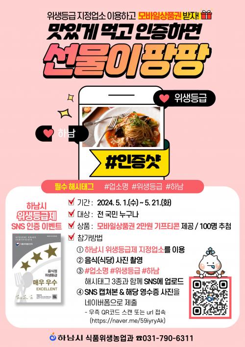 [½Åµ¿¾Æ¹æ¼Û Çϳ²½Ã=À̽ŵ¿±âÀÚ]Çϳ²½Ã´Â 5¿ù °¡Á¤ÀÇ ´Þ°ú Á¦23ȸ ½Äǰ¾ÈÀüÀÇ ³¯À» ¸Â¾Æ À§»ýµî±ÞÀ» ¹ÞÀº À½½ÄÁ¡À» ÀÌ¿ë ÈÄ ÀÎÁõÇÏ¸é ¼±¹°À» ÁÖ´Â ¡¸¸ÀÀÖ°Ô ¸Ô°í ÀÎÁõÇÏ¸é ¼±¹°ÀÌ ÆÎÆÎ¡¹ À̺¥Æ®¸¦ 5¿ù 1ÀϺÎÅÍ 21ÀϱîÁö ÁøÇàÇÑ´Ù°í ¹àÇû´Ù. ¡®À½½ÄÁ¡ À§»ýµî±ÞÁ¦¡¯´Â¡¦