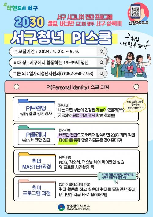 [½Åµ¿¾Æ¹æ¼Û=ÀÌÁöÇö±âÀÚ] ±¤ÁÖ±¤¿ª½Ã ¼­±¸(±¸Ã»Àå ±èÀ̰­)°¡ û³âµéÀÇ Áø·Î ã±â¸¦ Áö¿øÇϱâ À§ÇØ ¿À´Â 9ÀϱîÁö ¡®2030 ¼­±¸ û³â PI½ºÄ𡯠Âü¿©ÀÚ¸¦ ¸ðÁýÇÑ´Ù. PI(Personal Identity)½ºÄðÀº ÃÖ±Ù À¯ÇàÇϰí ÀÖ´Â MBTI °Ë»çº¸´Ù Àü¹®¡¤½ÉÈ­µÈ °ÍÀ¸·Î °¶·´°­Á¡°Ë»ç, ¹ö¡¦
