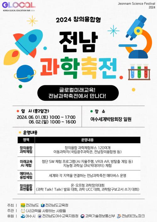 [½Åµ¿¾Æ¹æ¼Û Àü³²¿©¼ö=À̽ŵ¿±âÀÚ]Àü³²ÀÇ Èæ»êµµºÎÅÍ °æºÏÀÇ ¿ï¸ªµµ±îÁö, Áö¸®Àû ÇѰ踦 ¶Ù¾î³Ñ¾î °úÇÐÀ¸·Î Çϳª µÇ´Â ÃàÁ¦ ÇѸ¶´çÀÌ ÆîÃÄÁø´Ù. Àü¶ó³²µµ±³À°Ã»(±³À°°¨ ±è´ëÁß)Àº ¿À´Â 6¿ù 1~2ÀÏ ¿©¼ö¼¼°è¹Ú¶÷ȸÀå¿¡¼­ ¡®Àü³²°úÇÐÃàÀü¡¯À» ¡®2024 ´ëÇѹα¹ ±Û·ÎÄà ¹Ì¡¦