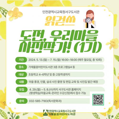 [½Åµ¿¾Æ¹æ¼Û ÀÎõ= À±¹Î½Ä ±âÀÚ]ÀÎõ±¤¿ª½Ã±³À°Ã»¼­±¸µµ¼­°ü(°üÀå ¹ÚÁ¤Èñ)Àº ÃʵîÇб³ 4~6Çгâ°ú Áß¡¤°íµîÇлýÀ» ´ë»óÀ¸·Î ÀаȾ² ¡¸µµÀü, ¿ì¸®¸¶À» »çÁøÀÛ°¡!¡¹ 1±â ÇÁ·Î±×·¥À» 5¿ù 13ÀϺÎÅÍ 7¿ù 15ÀϱîÁö ÁøÇàÇÑ´Ù. ¡¸µµÀü, ¿ì¸®¸¶À» »çÁøÀÛ°¡!¡¹´Â ±³À°±Ý°íÇù·Â»ç¾÷¡¦