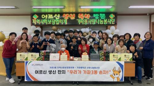 [½Åµ¿¾Æ¹æ¼Û ÀÎõ= À±¹Î½Ä±âÀÚ] °¡ÁÂ3µ¿ Áö¿ª»çȸº¸ÀåÇùÀÇü(°øµ¿À§¿øÀå ±è¼ºÁÖ, ÀÌÃáÀÚ)´Â Áö³­ 17ÀÏ °¡ÁÂÁßÇб³ »ç¶û³ª´®ºÀ»ç´Ü°ú ÇÔ²² °ü³» Ȧ·Î °è½Ã´Â ¾î¸£½Å ¼¼´ë¸¦ ¹æ¹®ÇÏ¿© ÄÉÀÌÅ©, °úÀÏ, ¾ç¸» µîÀ¸·Î »ý½Å»óÀ» ²Ù¹Ì°í ¾ÈºÎ¸¦ ¹¯´Â ¡®µ¶°Å¾î¸£½Å »ý½ÅÃàÇÏ È°µ¿¡¦